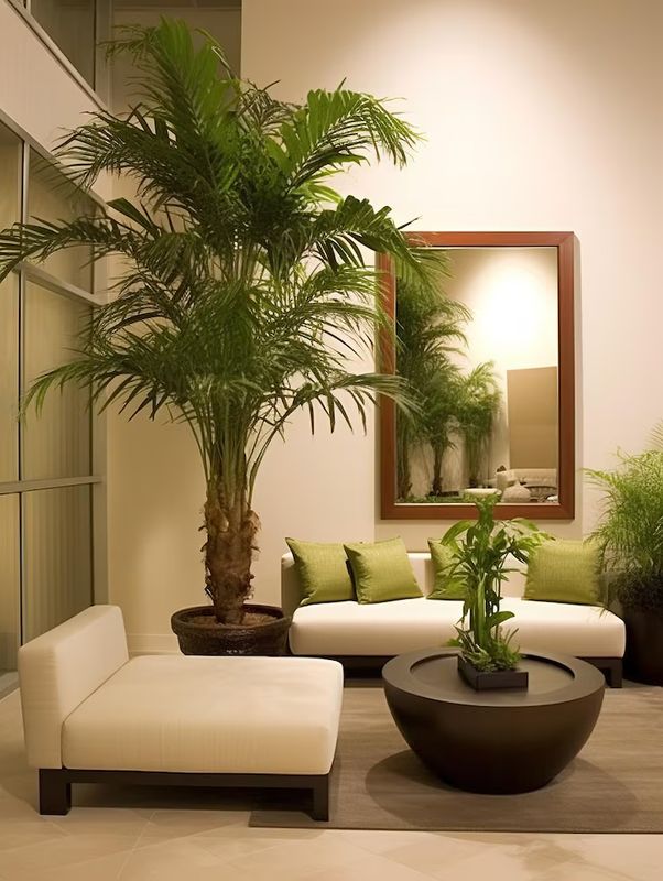 · Houseplants like palms or peace lilies